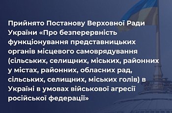 Проект Постанови про безперервність функціонування представницьких органів місцевого самоврядування (сільських, селищних, міських, районних у містах, районних, обласних рад, сільських, селищних, міських голів) в Україні в умовах військової агресії російської...