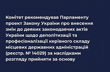 Проект Постанови про прийняття за основу проекту Закону України про внесення змін до деяких законодавчих актів України щодо деполітизації та професіоналізації керівного складу місцевих державних адміністрацій