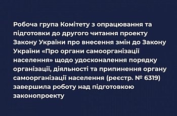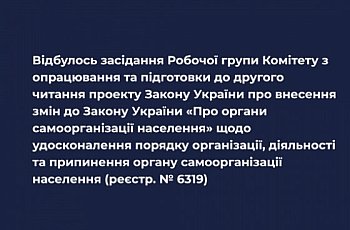 Під час засідання Робочої групи Комітету з опрацювання та підготовки до другого читання проекту Закону України про внесення змін до Закону України «Про органи самоорганізації населення» щодо удосконалення порядку організації, діяльності та припинення органу самоорганізації населення (реєстр. № 6319) обговорено низку поданих до законопроекту поправок і пропозицій