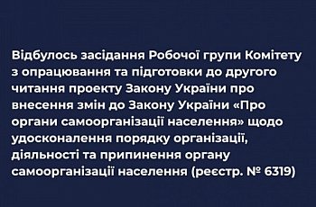 Відбулось засідання Робочої групи Комітету з опрацювання та підготовки до другого читання проекту Закону України про внесення змін до Закону України «Про органи самоорганізації населення» щодо удосконалення порядку організації, діяльності та припинення органу самоорганізації населення (реєстр. № 6319)