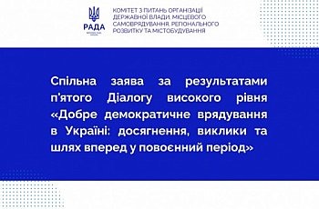 Добре демократичне врядування в Україні: члени Комітету з питань організації державної влади, місцевого самоврядування, регіонального розвитку та містобудування беруть участь у V Діалозі високого рівня.