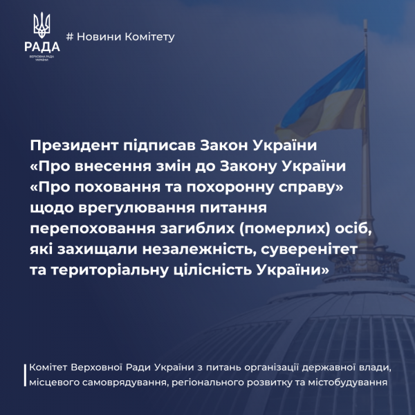 Закон вносить зміни до статей 14, 21, 25 Закону України «Про поховання та похоронну справу» і вдосконалює основні процедурні аспекти, пов’язані із перепохованням померлих (загиблих) осіб, передусім загиблих осіб, які захищали незалежність, суверенітет і територіальну цілісність України, у разі ідентифікації (встановлення) осіб, невпізнані останки яких раніше поховано.