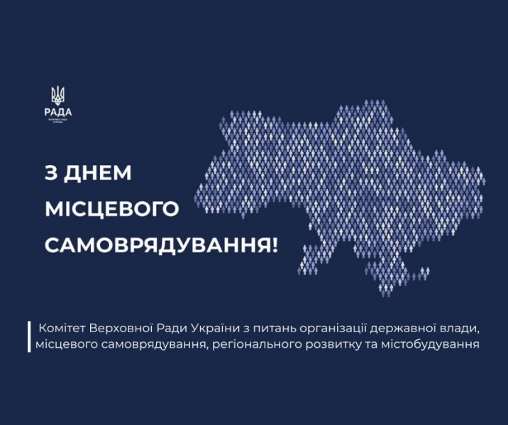 Комітет Верховної Ради України з питань організації державної влади, місцевого самоврядування, регіонального розвитку та містобудування щиро вітає з Днем місцевого самоврядування депутатів місцевих рад, сільських, селищних, міських голів, службовців і працівників місцевого самоврядування, науковців, експертів, громадський актив самоврядної сфери, усіх небайдужих людей, для кого сумлінна праця в інтересах територіальних громад стала справою і важливою частиною життя.