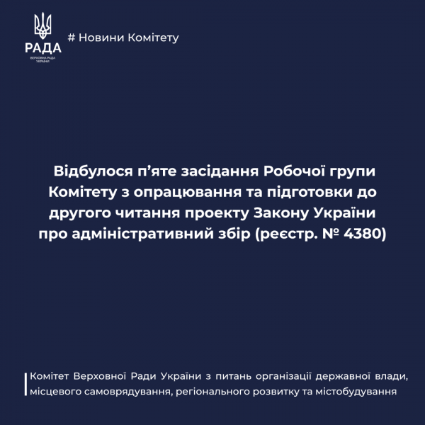 15 грудня 2025 року відбулося п’яте засідання Робочої групи Комітету з опрацювання та підготовки до другого читання проекту Закону України про адміністративний збір (реєстр. № 4380).
