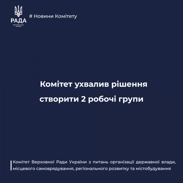 Комітет на своєму засіданні 13 січня ухвалив рішення створити 2 робочі групи: