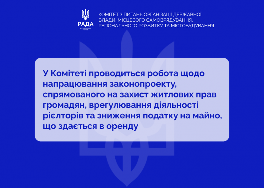 Окрему увагу робочої групи буде приділено легалізації рієлторській діяльності на ринку оренди нерухомості.