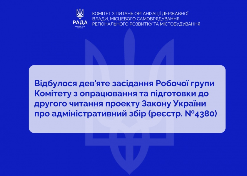 У Комітеті з питань організації державної влади, місцевого самоврядування, регіонального розвитку та містобудування продовжується робота з підготовки законопроєкту про адміністративний збір до другого читання (реєстр. № 4380).