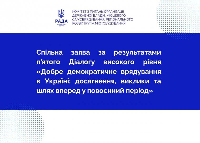 За наслідками п’ятого Діалогу високого рівня «Добре демократичне врядування в Україні: досягнення, виклики та шлях вперед у повоєнний період», що відбувся 1-2 квітня 2026 року у місті Страсбург за участі 14 парламентарів, напрацьовано підсумкову спільну заяву.