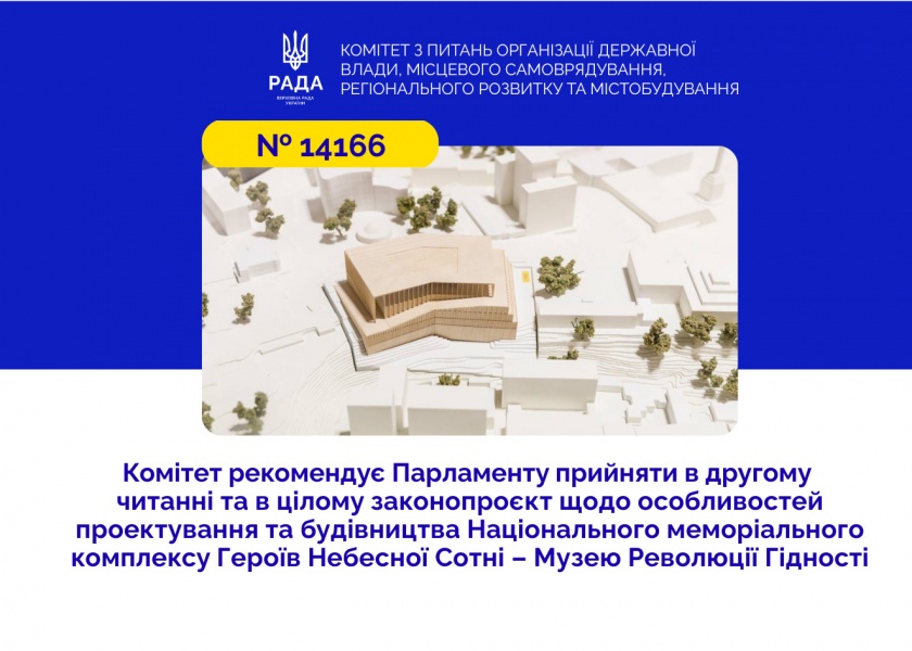 Підготовлена до другого читання редакція проєкту визначає деякі особливості, необхідні для проєктування та будівництва визначного церемоніального об’єкта державного значення, що включає меморіал та музей.