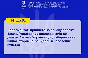 Збереження цінної історичної забудови в населених пунктах: Верховна Рада прийняла за основу законопроект № 11481