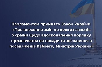 Парламентом прийнято Закон України «Про внесення змін до деяких законів України щодо вдосконалення порядку призначення на посади та звільнення з посад членів Кабінету Міністрів України»
