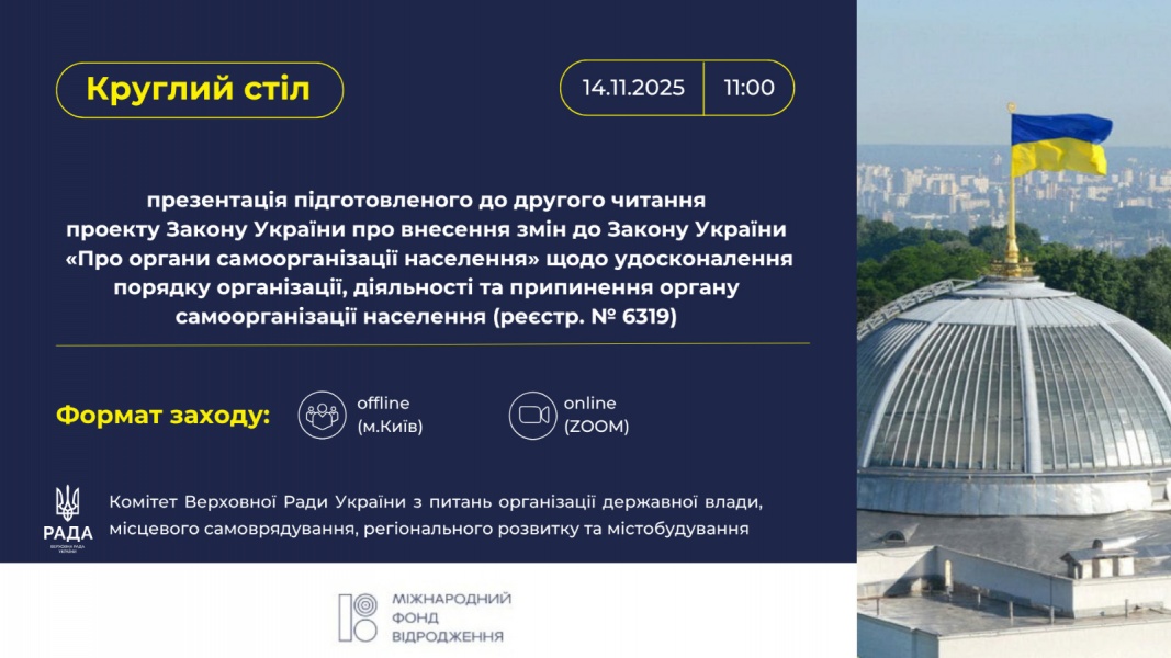Захід відбудеться 14 листопада об 11:00 у змішаному форматі (м. Київ та у режимі відеоконференції на платформі ZOOM) за сприяння та підтримки Міжнародного фонду «Відродження».
