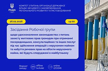 Четверте засідання Робочої групи Комітету щодо удосконалення законодавства з питань захисту житлових прав громадян при отриманні посередницьких, консультаційних та інших послуг під час здійснення операцій з нерухомим майном та набуття речових прав на об’єкти нерухомого майна, які будуть споруджені в майбутньому