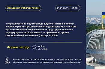 Засідання Робочої групи Комітету з опрацювання та підготовки до другого читання проекту Закону України «Про внесення змін до Закону України «Про органи самоорганізації населення» щодо удосконалення порядку організації, діяльності та припинення органу самоорганізації населення» (реєстр. № 6319)